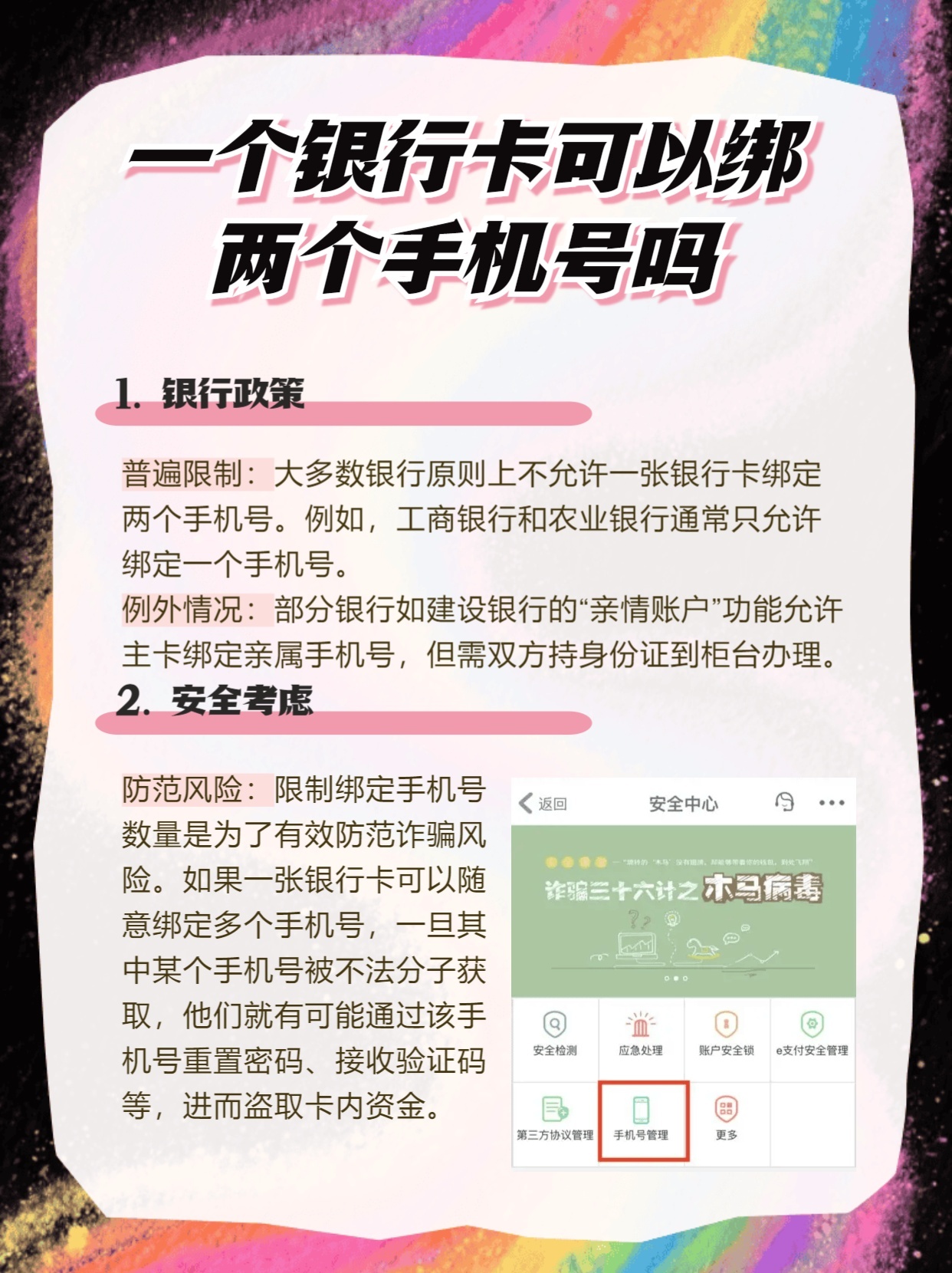 一张银行卡能绑定两个手机号码吗?一张银行卡可以绑定两个手机号码,通常是绑定一个主手机号和一个副手机号。绑定多个号码便于接收银行信息,如账户余额变动、支付确认等。这样做有助于增强账户安全。具体操作可通过网银、手机银行或至银行柜台进行。... 2025-12-09 - [阅读全文]